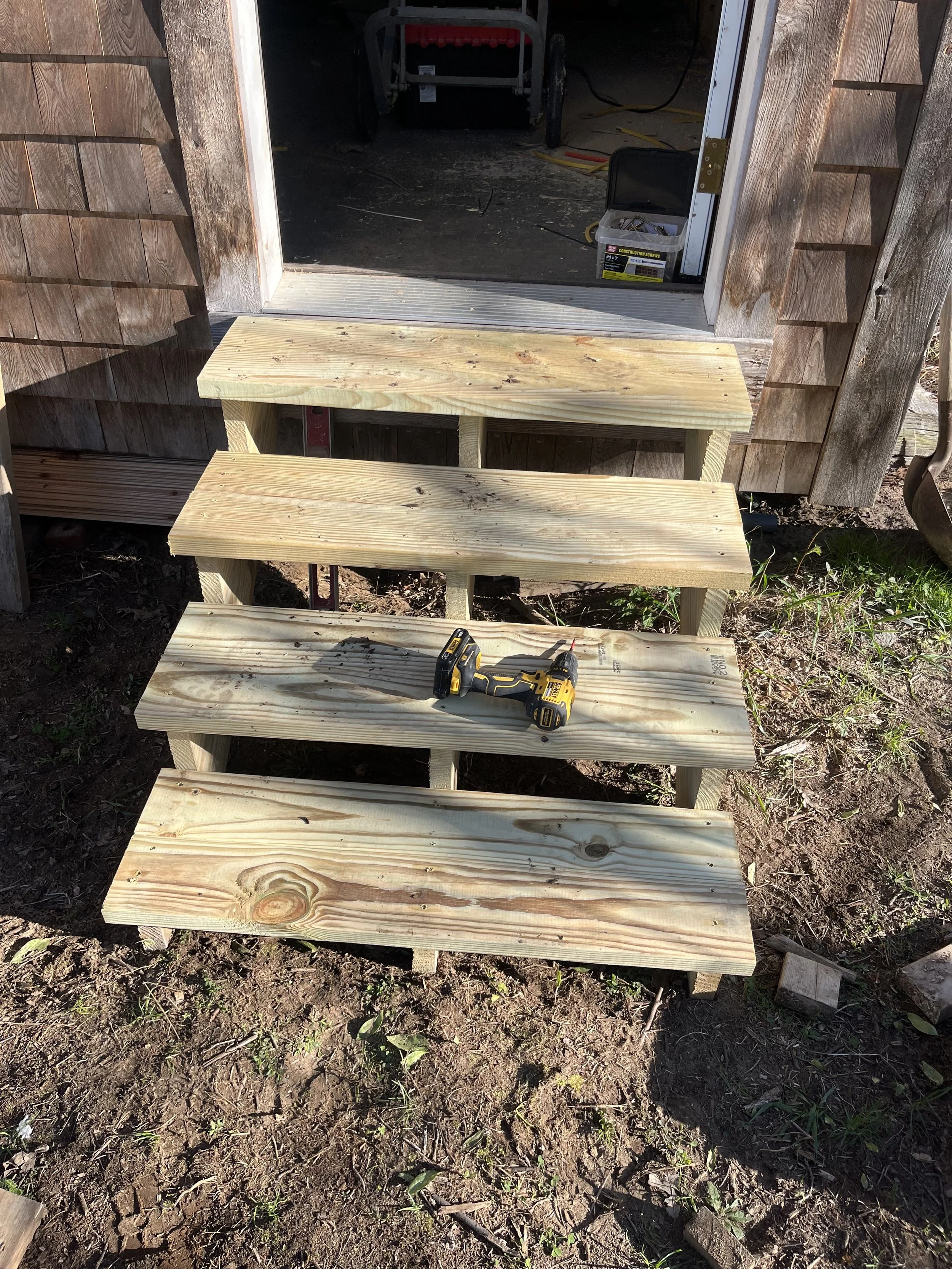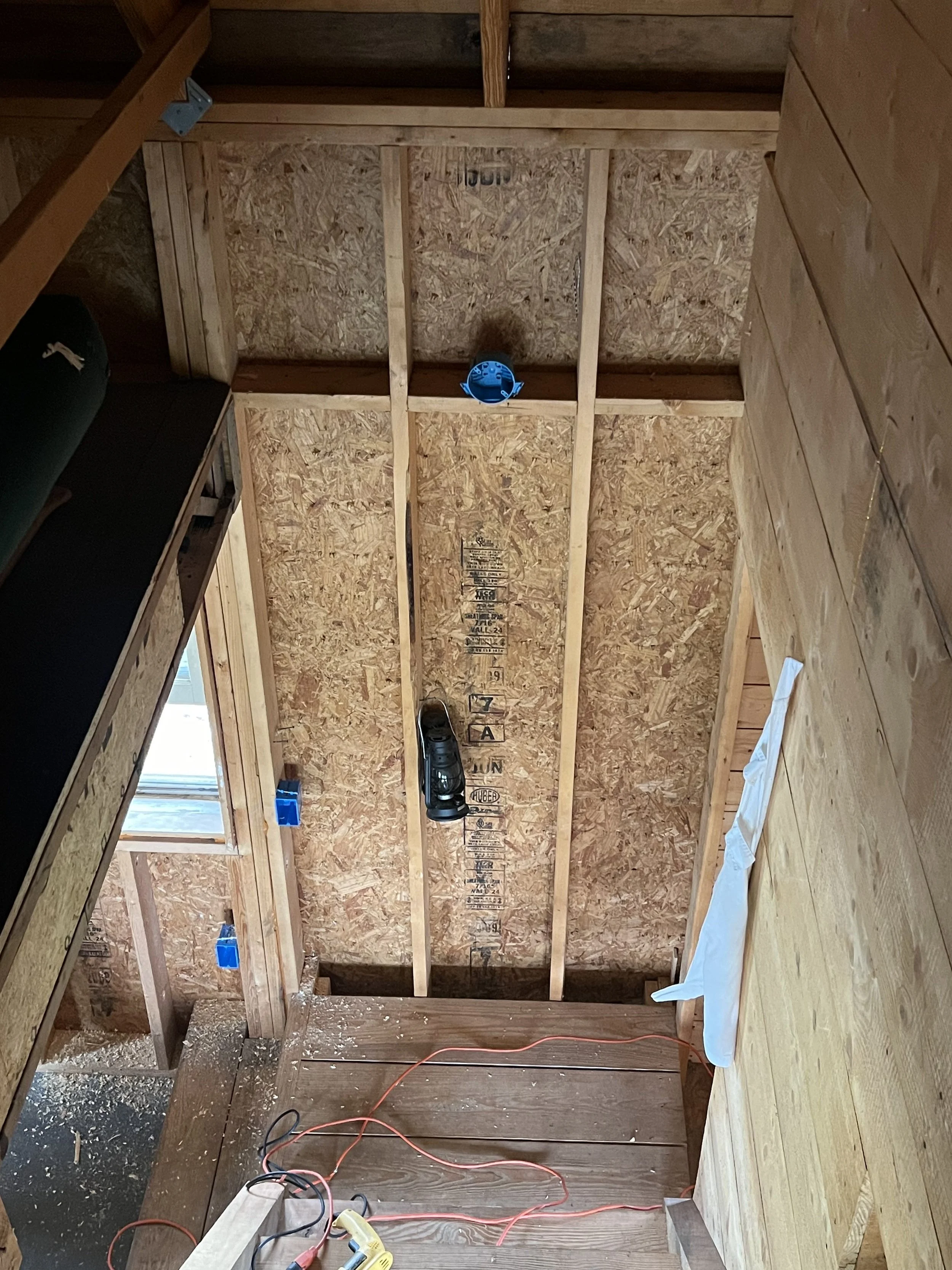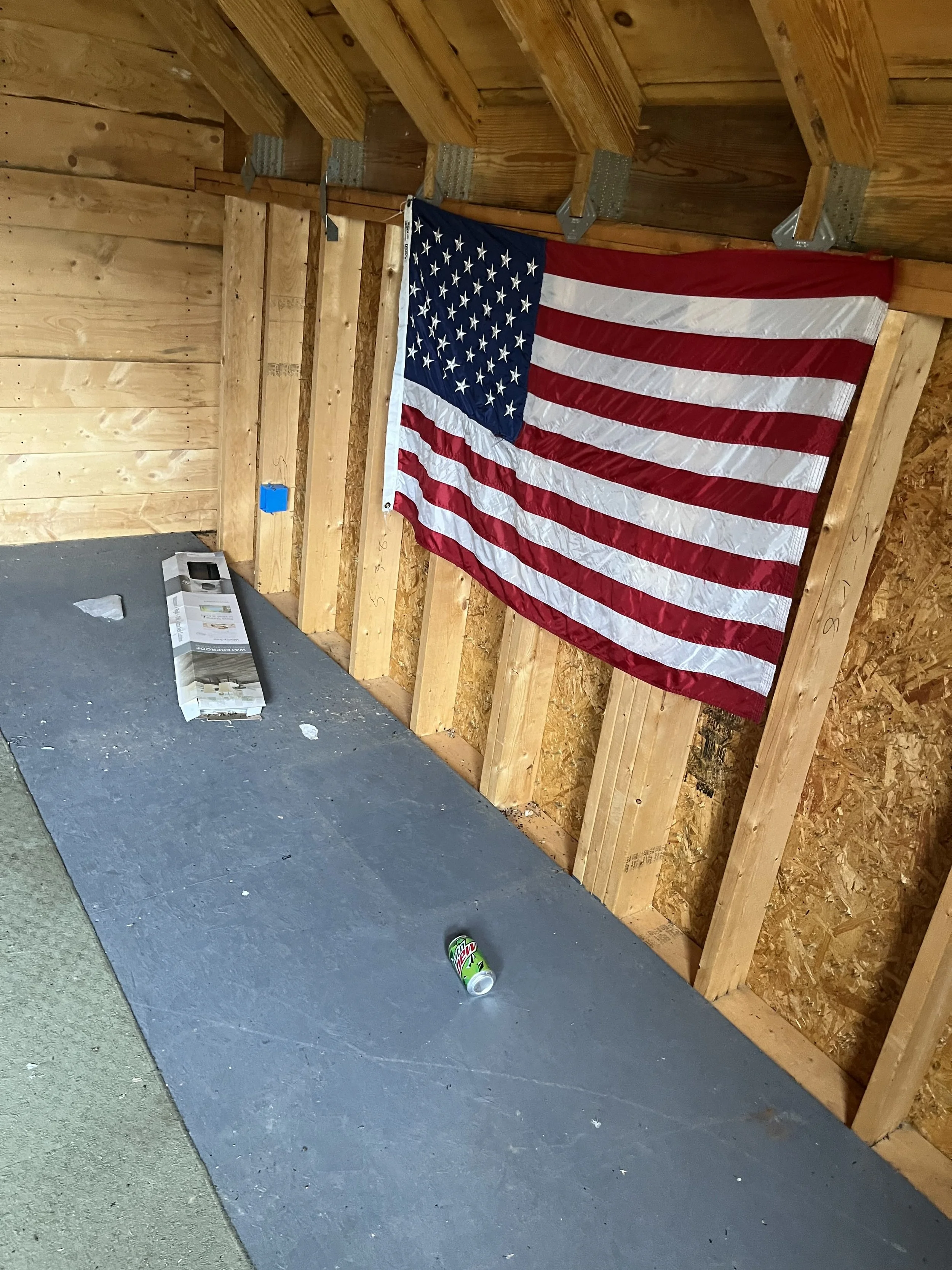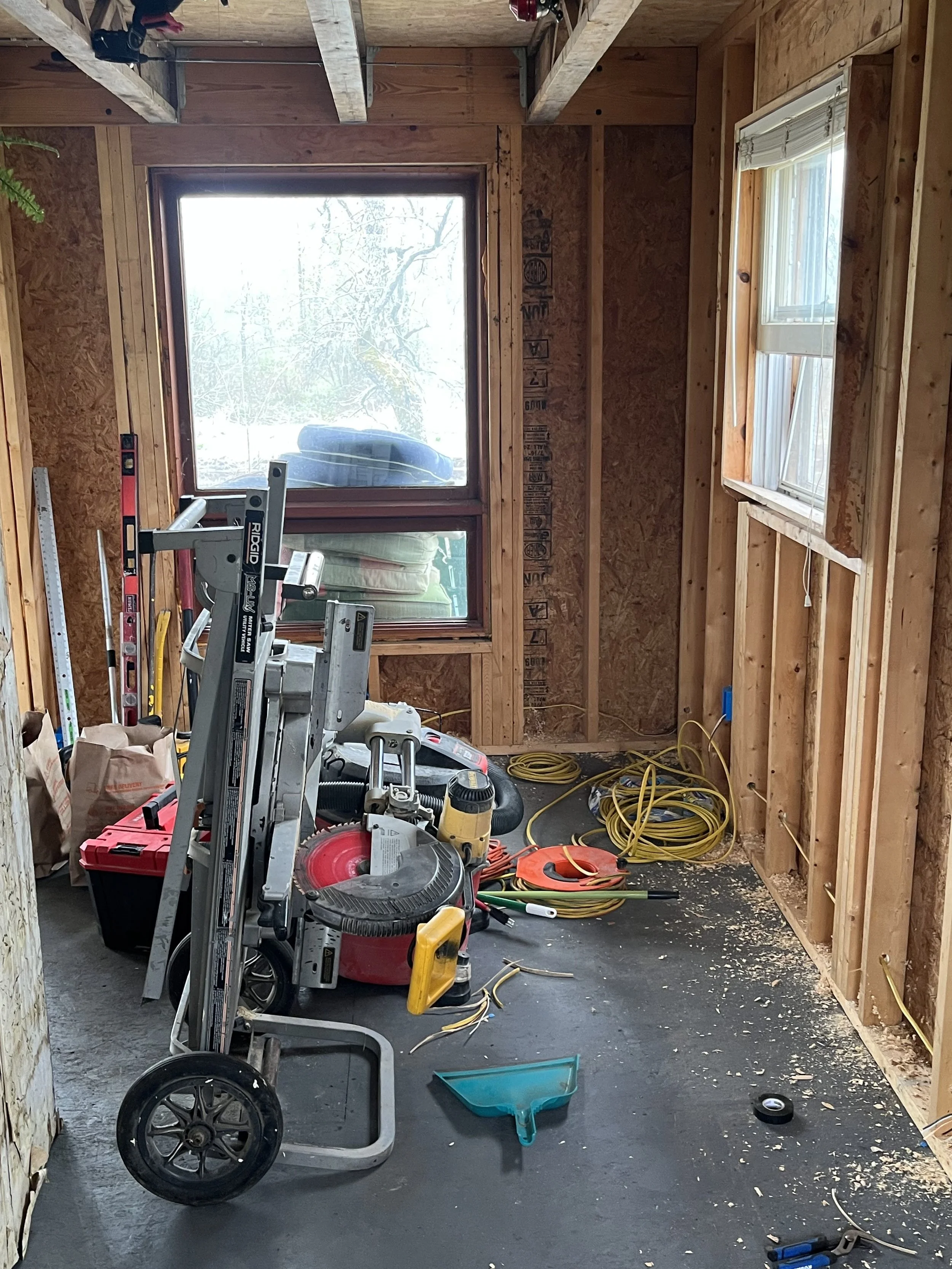 At this job, Nostrom Handyman Services (NHS) Gutted entire building and replaced all electrical. Installed new insulation and water heater. Installed new vinyl flooring and covered the insulation/walls with tongue and groove pine.