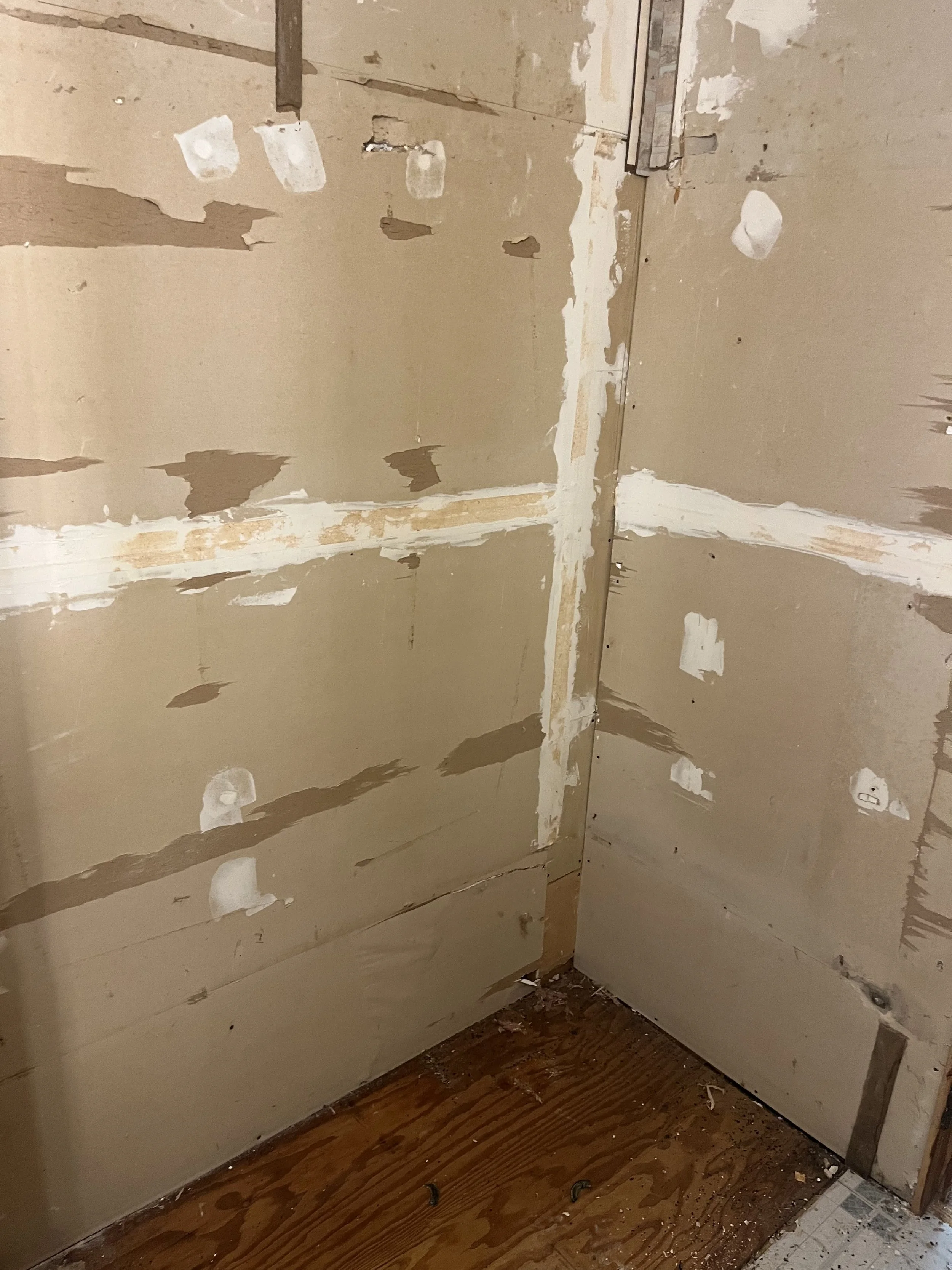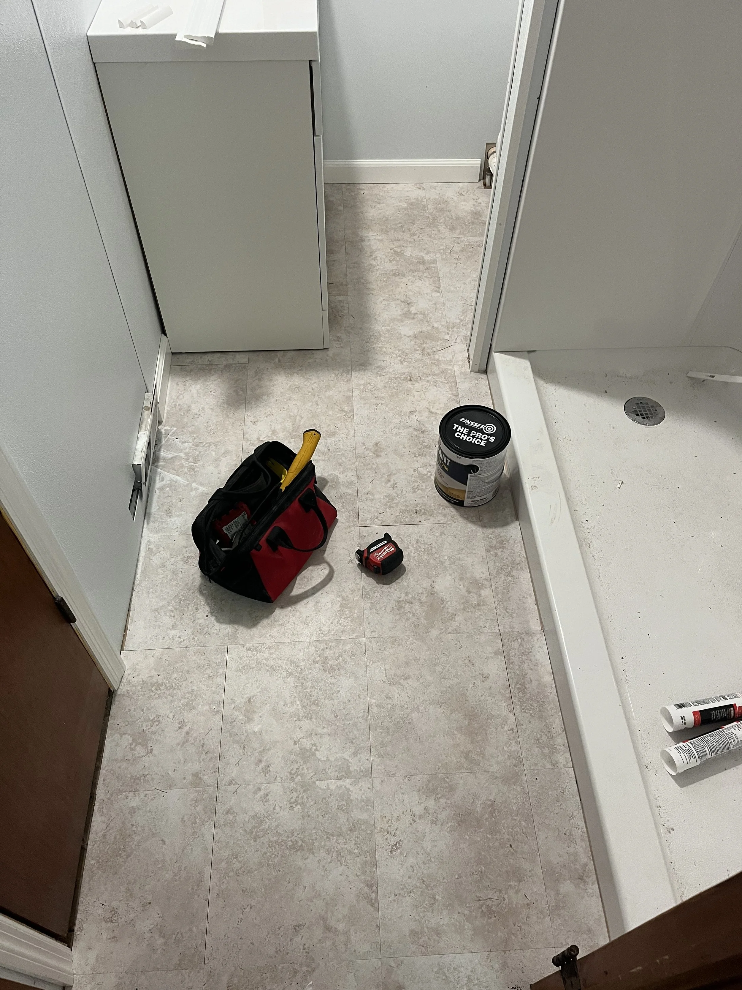 At this job, Nostrom Handyman Services (NHS) destroyed the old bathroom walls, tub, floor and replaced it with all new!